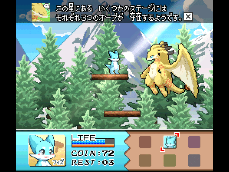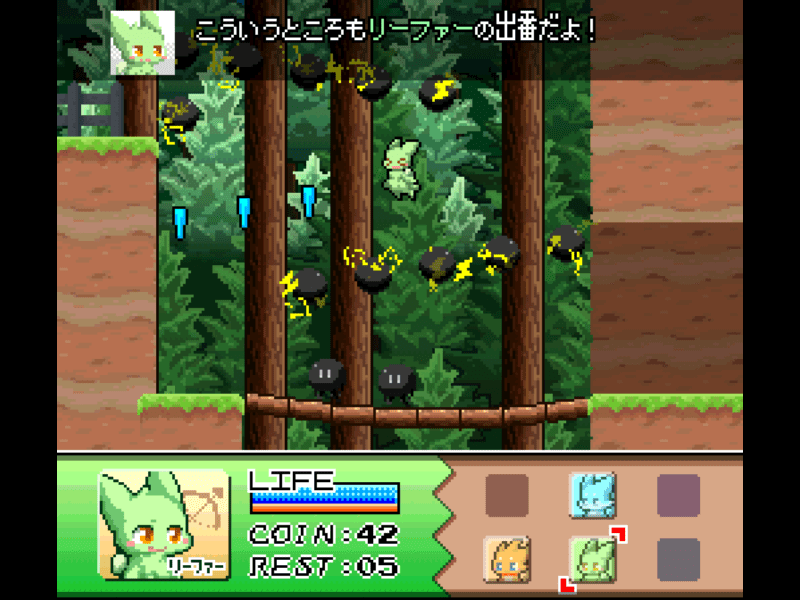 本作は、臨機応変にキャラクターを切り替えながら進んでゆく2.5Dドット絵アクションゲームです。作中の『立体保護区』では、2Dのグラフィックと操作を維持しつつ、3D空間を進んでいくという特徴的なゲーム体験を楽しむことができます。